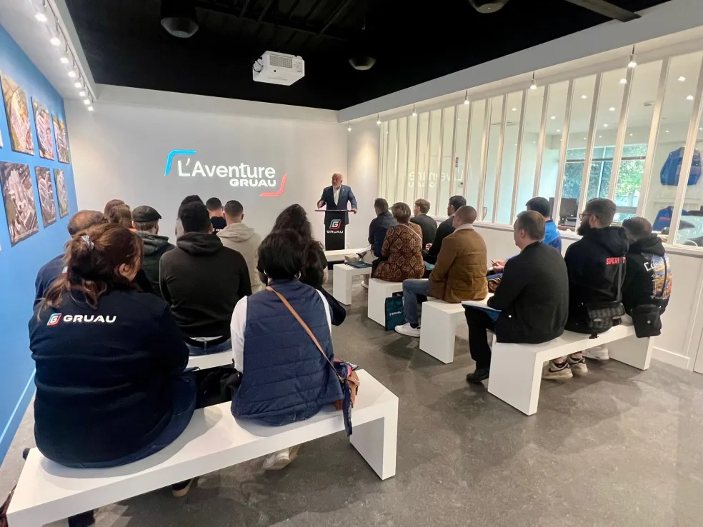 De la naissance du groupe en 1889, à son évolution au fil de 136 ans d’existence, les nouvelles recrues ont écouté avec attention Patrick GRUAU, actuel Président du Groupe et 5ème capitaine de l’entreprise, lors de sa présentation de l’Aventure Gruau ce matin.