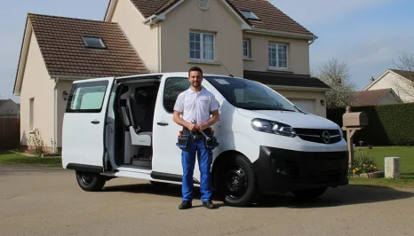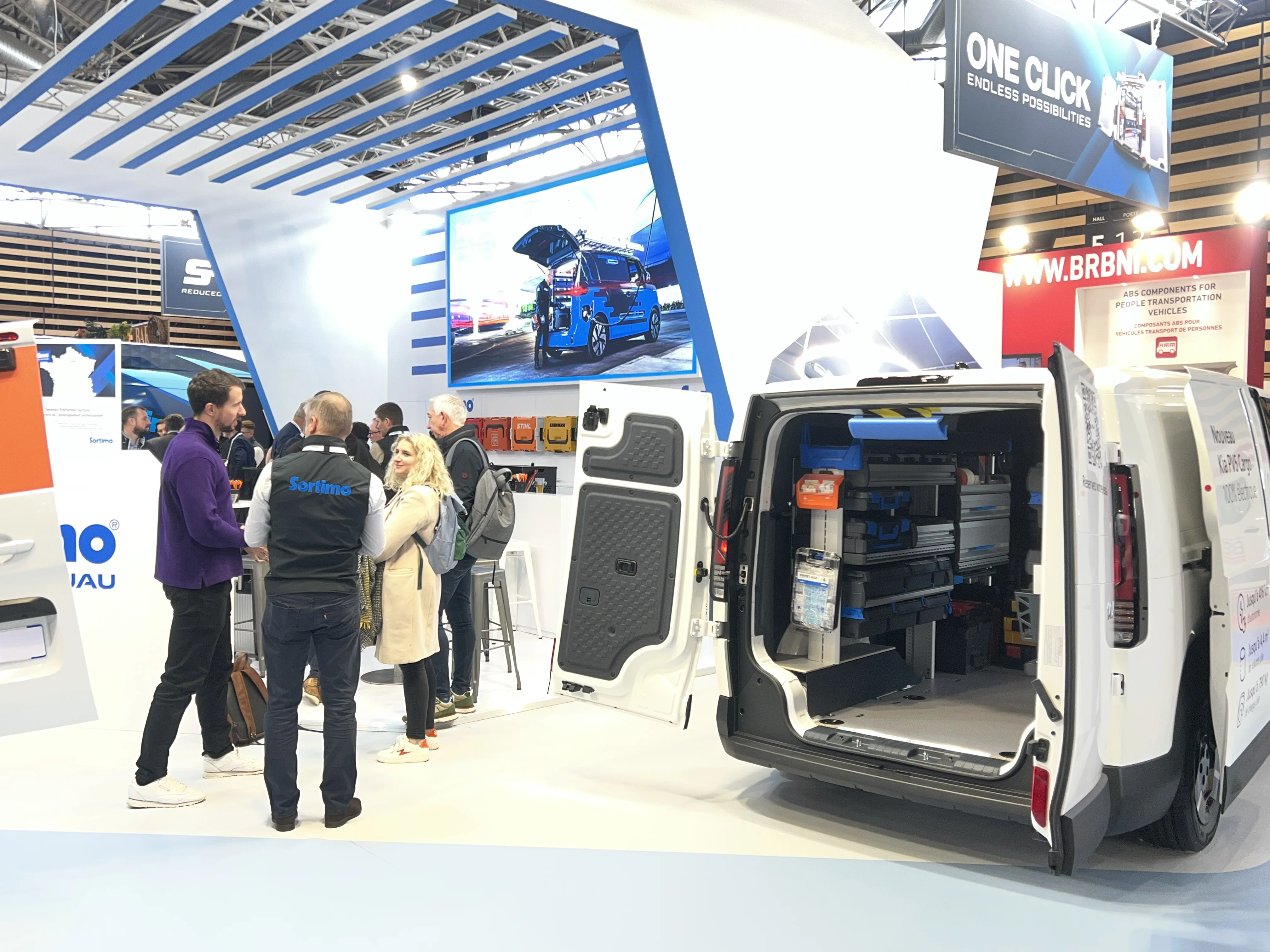 Véhicule assistance avec aménagement Globelyst adapté service pièces de rechange et cabine ZuoCab pour transfert d’équipiers :