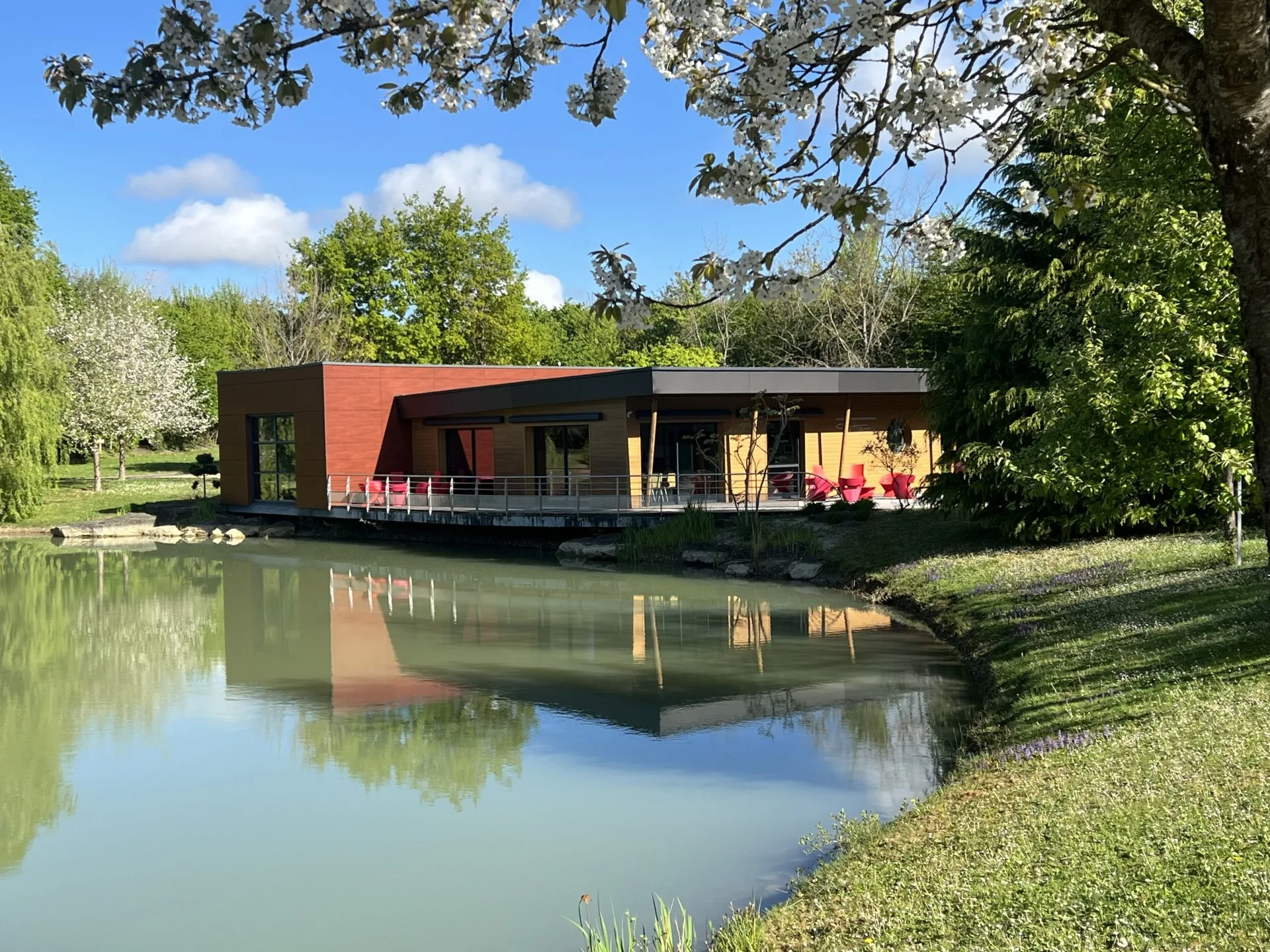 Utilisé également comme lieu des séminaires internes, cet espace niché dans un écrin de verdure, au cœur de notre usine historique, est propice à la réflexion et à la détente.