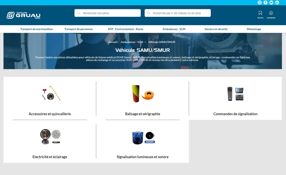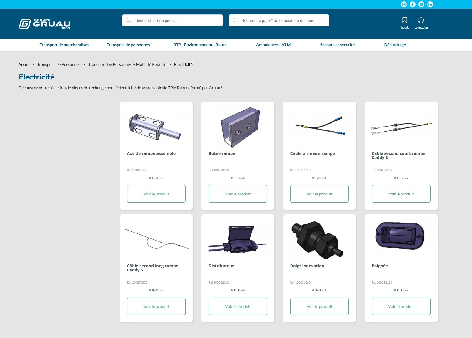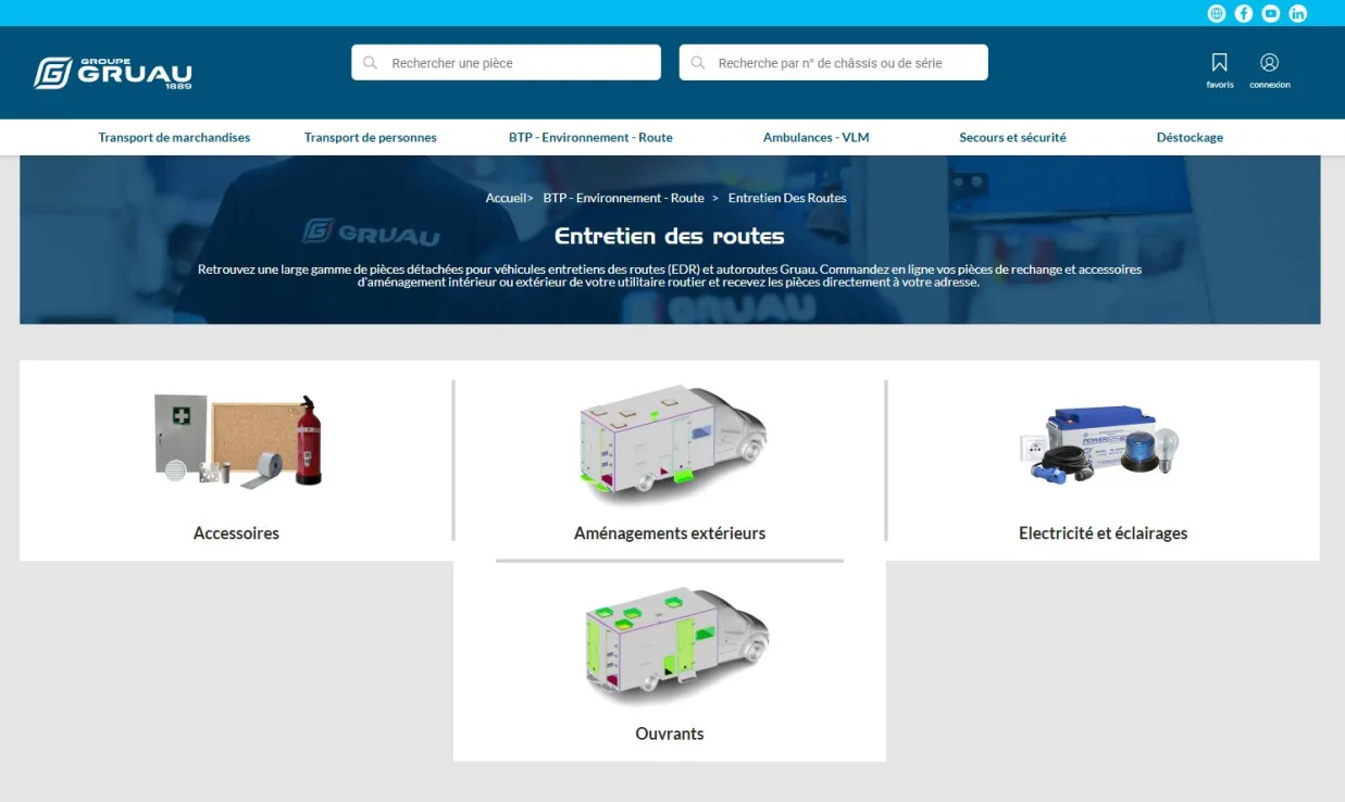 Le site e-commerce de pièces de rechange et accessoires du Groupe Gruau est accessible aux professionnels et particuliers pour l'entretien de tout véhicule utilitaire Gruau.